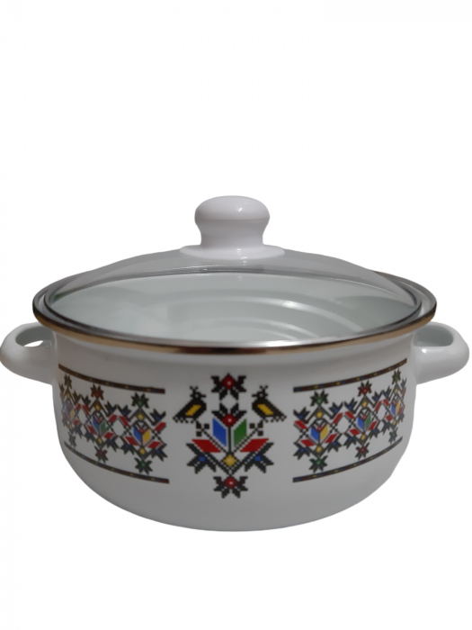 Oti Oala Emailata 1L + Capac Sticla Termorezistenta