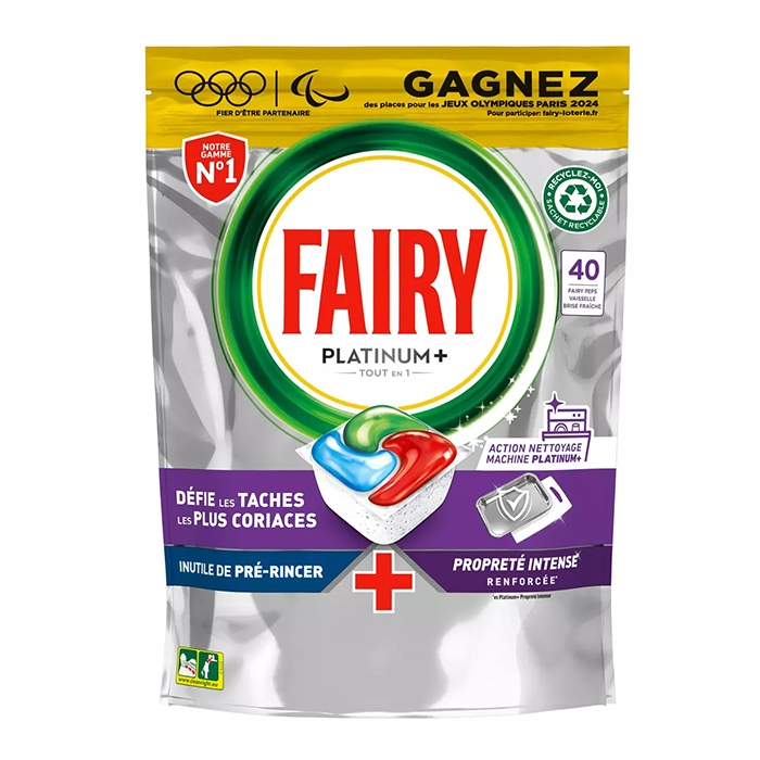 Capsulele pentru masina de spalat vase Fairy Platinum Plus ofera o curatare ca noua, precum si cea mai buna colectie de curatare a alimentelor dificile Fairy, ajutand chiar si la eliminarea aspectului lipsit de stralucire acumulat de-a lungul timpului, pentru a reda stralucirea originala a vaselor.