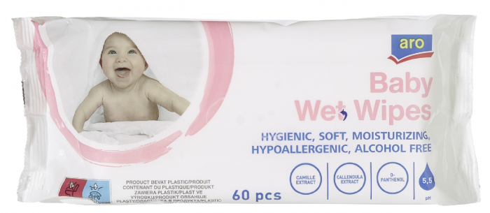 Aro Servete Umede pentru Copii Sensitive. Contine 60 servetele umede pentru copii.