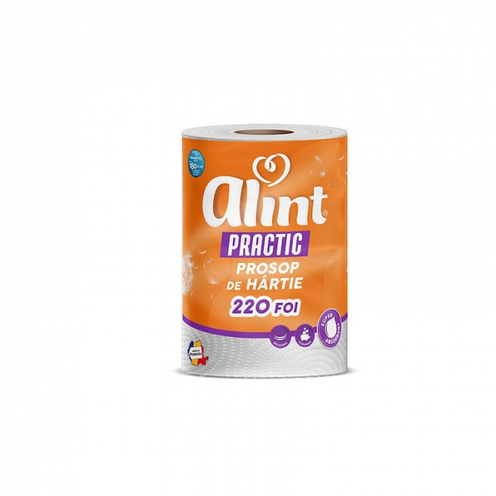 Alint Prosoape Bucătărie sunt create pentru eficiență și absorbție, având 220 de foi și fiind alcătuite din 2 straturi de celuloză pură, oferind rezistență și absorbție maximă.