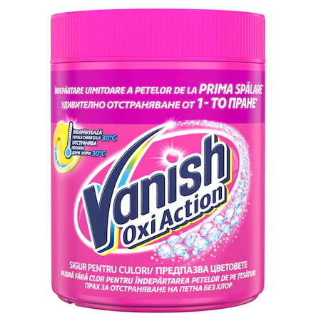 Este cea mai buna formula de la Vanish pentru indepartarea petelor de pe rufe colorate si albe. Actioneaza in doar 30 de secunde si indeparteaza uimitor petelor in doar 30 de secunde.