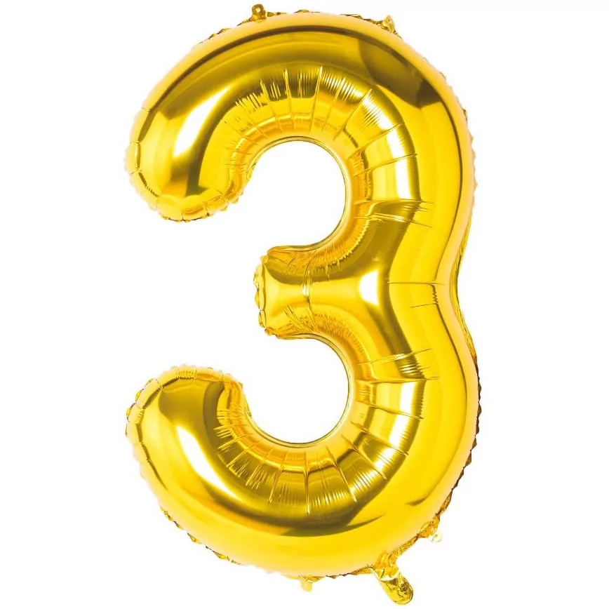 Balon Aniversare 80cm Auriu, cifra 3, 1 buc