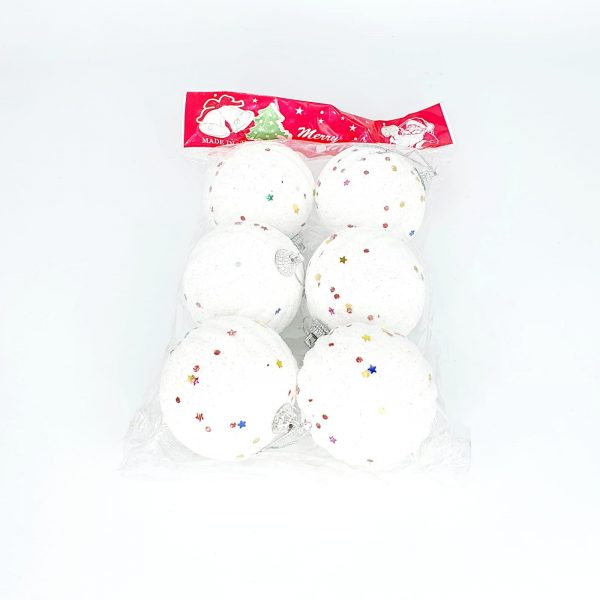 Globulete din polistiren placate cu sclipici alb. Dimensiuni ; 6cm